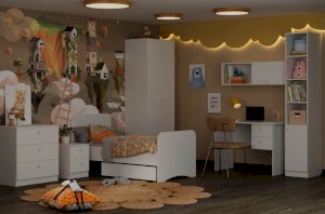 Комод имеет три вместительных ящика полного выдвижения, в которых с легкостью можно разметить как постельное белье, так и одежду.