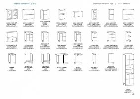 Глубина верхних шкафов указана без учета фасада, высота столов указана без учета столешницы