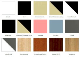 Возможные цвета кровати: белый, слоновая кость, венге, венге/слоновая кость, венге/белый, шоколад, шоколад/слоновая кость, розовый, голубой, серый, серо-белый, натуральный, темный мед (орех), вишня (бук), карамель