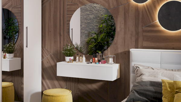 Тип 2 - это более крупные размеры, которые позволяют использовать ее как туалетный столик, консоль в прихожую или подвесную тумбу ТВ. Такая тумба может стать не только функциональным элементом интерьера, но и стильным дополнением к общей концепции дизайна помещения. Благодаря своей универсальности, такую тумбу можно использовать в разных комнатах и для разных целей. Например, она может стать отличным дополнением к действующим коллекциям мебели, таким как «Агата» или «Хилтон».