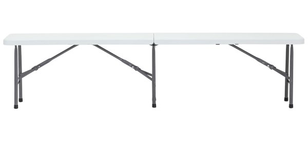 В числе преимуществ модели – компактная и удобная конструкция. В сложенном виде скамейка занимает минимум места, благодаря чему можно без проблем перевезти несколько штук даже на легковом транспорте. Для каркаса используется стальная труба особой прочности, а сиденье выполнено из 100% не переработанного полиэтилена HDPE (полиэтилен высокой плотности). Считается одним из более безопасных видов пластика. HDPE пластик выдерживает высокие нагрузки, не трескается при ударной нагрузке, эластичен в диапазоне температур от –70 до +100 °С.