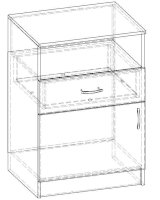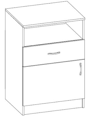 • Корпус, полки и фасады изготовлены из ЛДСП 16 мм с кромкой ПВХ 0,4 мм.