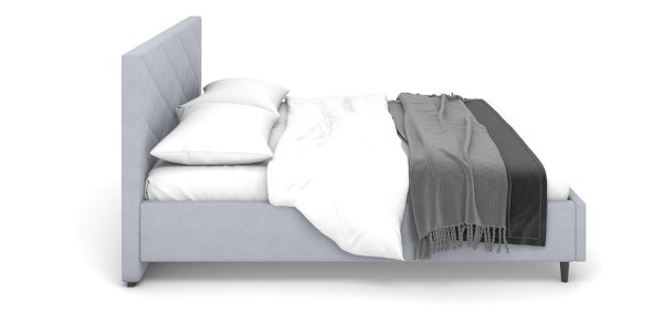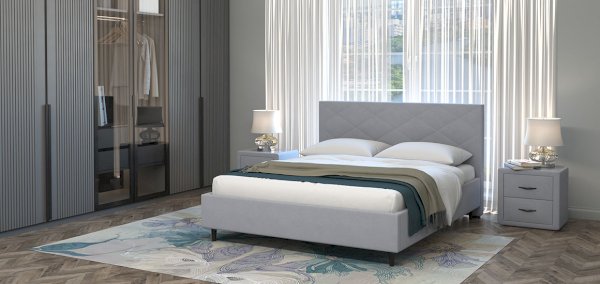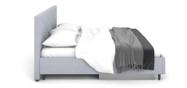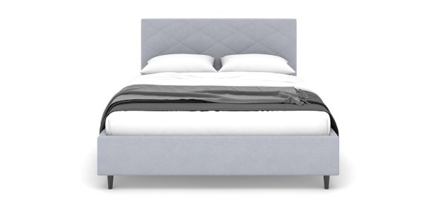 Кровать Аликанте сканди украсит любой интерьер. Особенности кровати: высокое и мягкое изголовье стильной стёжкой, небольшие размеры по ширине относительно спального места и высокие ножки 12 см (пластик).