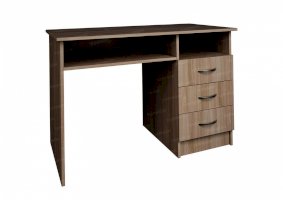 Стол письменный №1 имеет традиционную конструкцию и классический дизайн. Он состоит из рабочей поверхности комфортной глубины, трех выдвижных ящиков для хранения бумаг и канцелярских принадлежностей, а также двух открытых полочек. Модель может использоваться как дома, так и в офисе. За ней удобно писать, читать, учить уроки или работать с документами.