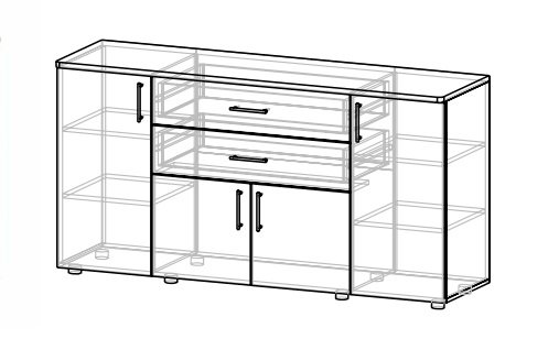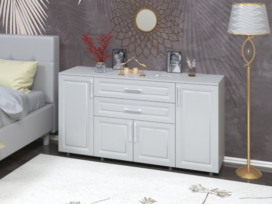 Комод из коллекции системной мебели Валенсия. Эта мебель отличается элегантным стилем и позволяет создавать классические предметы интерьера для гостиной, столовой, спальни или офиса. У модели четыре распашные дверцы и два практичных ящика.