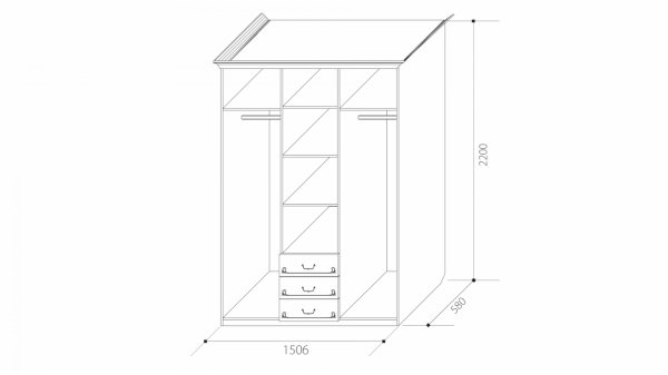 Шкаф 3-х створчатый с выдвижными ящиками