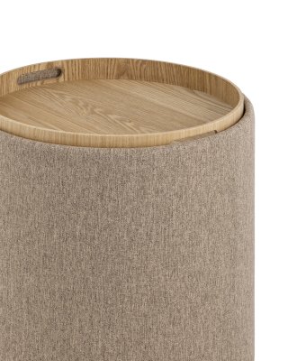 Мягкий пуф с ящиком станет незаменимым украшением интерьера. Он не только удобный, но и функциональный. Благодаря двухсторонней крышке, пуф можно трансформировать в журнальный столик. Столешница выполнена из светлого дерева с бортиками по краям и вырезными ручками для удобства, и безопасности при использовании. Крышка пуфика полностью съемная и при необходимости её можно использовать как поднос. Полезное дополнение - ящик для хранения различных мелочей, внутри обит тканью. Компактный и вместительный, такой пуфик наполнит пространство особым уютом и теплом. Подойдет для любого интерьера - как в классическом стиле, так и в современном.