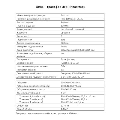 Диван-трансформер Италмас (Аквилон) - за 73 382 руб. в Пскове. Купите на сайте pskov.onlinemarketmebeli.ru или по телефону 8(800)505-30-63 уже сегодня! Уточнить наличие, комплектацию, актуальную цену можно бесплатно у менеджера ежедневно. Закажите Диван-трансформер Италмас (Аквилон) до конца акции! Доступна покупка в кредит, рассрочку. Доставим со склада или на заказ.