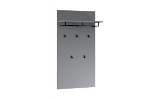Компактная и функциональная вешалка из белого ЛДСП включает в себя самое необходимое для организации хранения в прихожей. Верхняя полка разместит головные уборы, а металлическая штанга и пять крепких крючков контрастного черного цвета поместят на себе одежду объемом с небольшой шкаф. Идеально компонуется со всеми модулями системы Йорк.