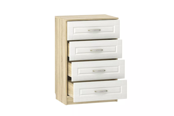 Комод Оливия НМ 040.38 X имеет компактные габариты и не займет много места в детской или спальне. Четыре вместительных ящика позволят рационально разместить внутри модуля постельные принадлежности и белье.