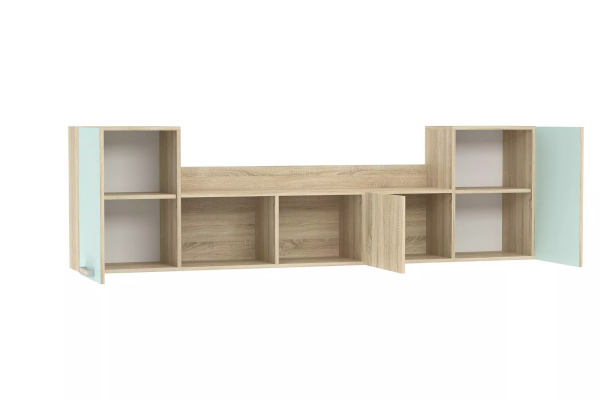 Полка сделает рабочую зону в детской еще более функциональной. Модуль состоит из трех закрытых отделений и двух открытых ниш. В боковых отделениях предусмотрена полка для размещения книг. Открытые ниши подойдут для размещения декора, фотографий или игрушек.