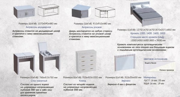 Спальное место: 90/120/140/160/180х200