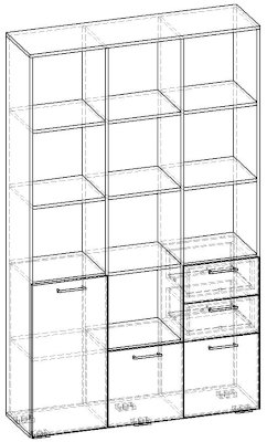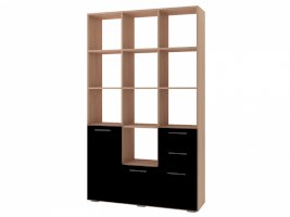 Применение задней стенки из ЛДСП (в ячейках с ящиками и фасадами) позволяет использовать данный стеллаж для зонирования пространства (чтобы предотвратить опрокидывание, необходимо обеспечить крепление стеллажа к стене).