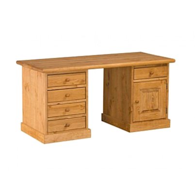 Массивный письменный стол позволит организовать удобное рабочее место в офисе или домашнем кабинете в классическом стиле. На широкой столешнице без труда разместятся не только компьютер, но и рабочие документы и материалы. Стол оборудован тумбой с четырьмя выдвижными ящиками для канцелярских принадлежностей, и тумбой со шкафчиком и дополнительным ящиком.
